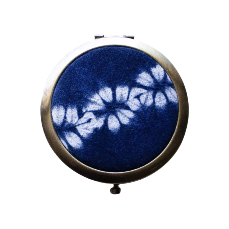 Handmade tie-dye small mirror for makeup with a stream pattern on it